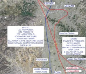 Il punto da cui partiva la proposta di Sorge, fondamentale, era il luogo dove costruire la Stazione Alta Velocità. Non Rigutino, e nemmeno Frassineto, ma la zona di Ristradella.