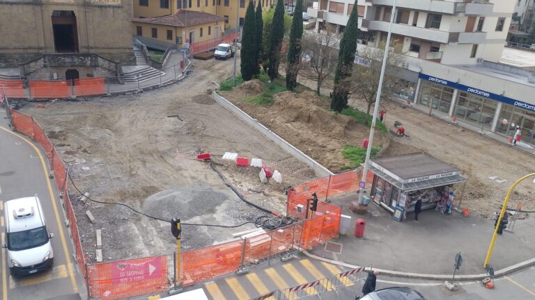 Il sindaco Ghinelli incontrando i cittadini aveva rivisto l’idea di viabilità che torna ad assediare la Piazza con la splendida scultura di San Francesco e la Lupa. Ora si torna a proporre viabilità invasiva.