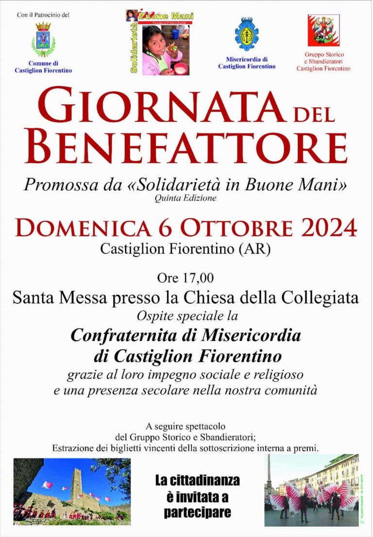 L’iniziativa avrà luogo domenica 6 ottobre alle ore 17.00 con la Santa Messa preso la Chiesa della Collegiata in Castiglion Fiorentino, uno momento di preghiera, di riflessione e un pensiero forte ai Benefattori dell’Associazione che non sono più tra noi. A seguire ci sarà uno spettacolo di giochi di bandiera nella piazza antistante la Chiesa grazie al “Gruppo Storico e Sbandieratori Città di Castiglion Fiorentino” che non poteva certo mancare. Grande protagonista del lungo viaggio di solidarietà iniziato con Padre Arturo Buresti e oggi testimonial di tante iniziative a favore dei progetti. La “Giornata del Benefattore” è patrocinata dal Comune di Castiglion Fiorentino. Al termine della serata verranno estratti i biglietti vincenti della sottoscrizione interna a premi il cui ricavato è interamente destinato al sostegno dei tanti progetti in corso.