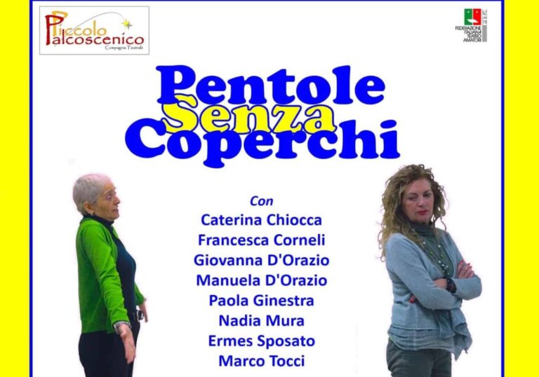 Sarà la Compagnia Teatrale Piccolo Palcoscenico di Pomezia (Rm) a portare in scena domenica 27 ottobre, alle ore 16, presso il Teatro Moderno di Tegoleto, “Pentole senza coperchi” per la regia di Marco Fiorani nell’ambito del XXV Concorso di Teatro Amatoriale.