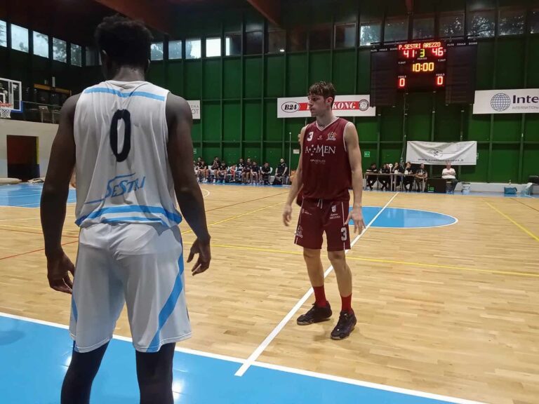 Arezzo entra negli ultimi due minuti di gioco con 6 lunghezze di vantaggio, ma una super tripla di Cavallaro mette pressione agli amaranto che non riescono ad essere fluidi in attacco come in precedenza, dalla lunetta però Arezzo è precisa con Iannicelli e Toia, dall’altra parte replica Sestri che segna i liberi che la portano a 1 punto di distanza con 8 secondi da giocare.