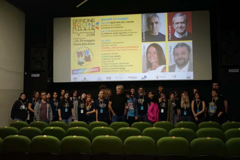 Ulteriori informazioni: www.officinesocialmovie.com. Officine Social Movie è un progetto di Orchestra Multietnica di Arezzo e Officine della Cultura realizzato in collaborazione con Liceo Artistico Coreutico Scientifico Quadriennale “Piero della Francesca” annesso al Convitto Nazionale “Vittorio Emanuele II” di Arezzo, Poti Pictures, Unicoop Firenze Sezione Soci Arezzo, Autismo Arezzo. Con il contributo di Fondazione CR Firenze e Comune di Arezzo. Media partner Teletruria. Per la fornitura dei libri per le presentazioni si ringrazia La Feltrinelli Point di Arezzo. I premi di Officine Social Movie sono realizzati da dB production con materiale ecologico e riciclabile.