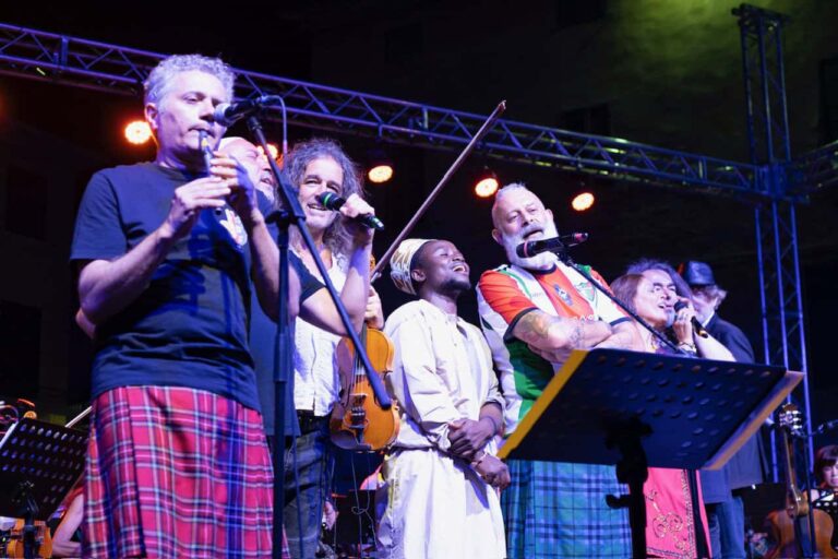 Le immagini fanno riferimento all’evento inaugurale del Festival delle Musiche a Foiano della Chiana con il concerto “Culture contro la paura. Orchestra Multietnica di Arezzo ospita Modena City Ramblers”. Foto di Ascanio Ferraro.