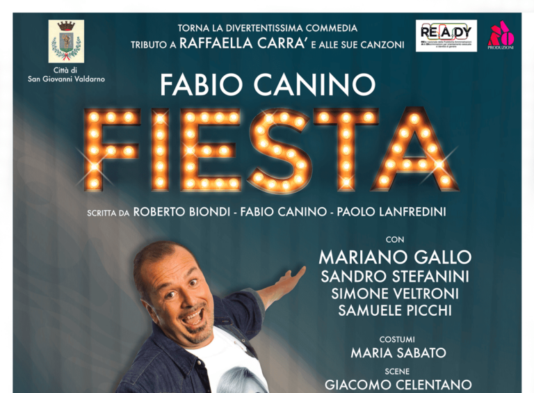 Arriva a San Giovanni Valdarno la commedia tributo a Raffaella Carrà e alle sue canzoni. Venerdì 22 marzo alle 21 andrà in scena, al cinema teatro Masaccio, Fiesta , divertente spettacolo scritto da Roberto Biondi, Fabio Canino e Paolo Lanfredini. Un’occasione per ridere e divertirsi riflettendo sul mondo lgbtqia+ e su argomenti di attualità, dalla politica alla religione.
