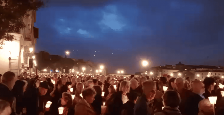 Migliaia di persone in cammino, una lunghissima fiaccolata che da Ponte alla Grazie si è diretta verso San Niccolò, passando dalle Rampe del Poggi per raggiungere Piazzale Michelangelo.