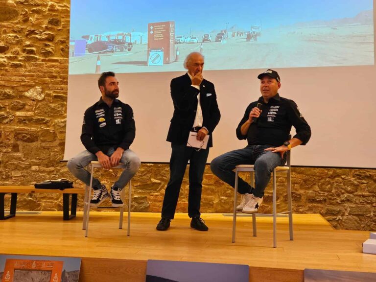 Rispondendo alle domande del giornalista automobilistico Nedo Checchi, Stefano Marrini, visibilmente emozionato, ha ripercorso le tappe più significative della gara, raccontando le difficoltà e le emozioni di oltre 7.700 chilometri percorsi tra sabbia, rocce e canyon dell’Arabia Saudita.