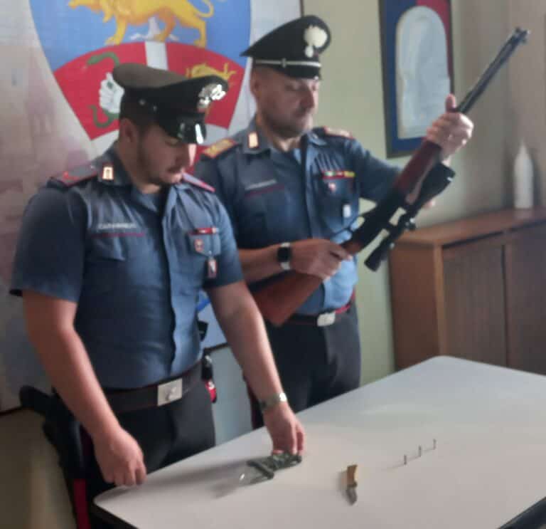 Il comportamento, a questo punto appariva sospetto ai militari, che hanno deciso di approfondire il controllo, effettuando una perquisizione veicolare. Allโesito, รจ stato rinvenuto un fucile con tanto di cannocchiale per lโingrandimento del bersaglio, nascosto sotto un telo ma nelle immediate vicinanze del conducente, che quindi ne aveva la piena disponibilitร ed il pronto utilizzo, come anche a portata di mano, erano le munizioni.