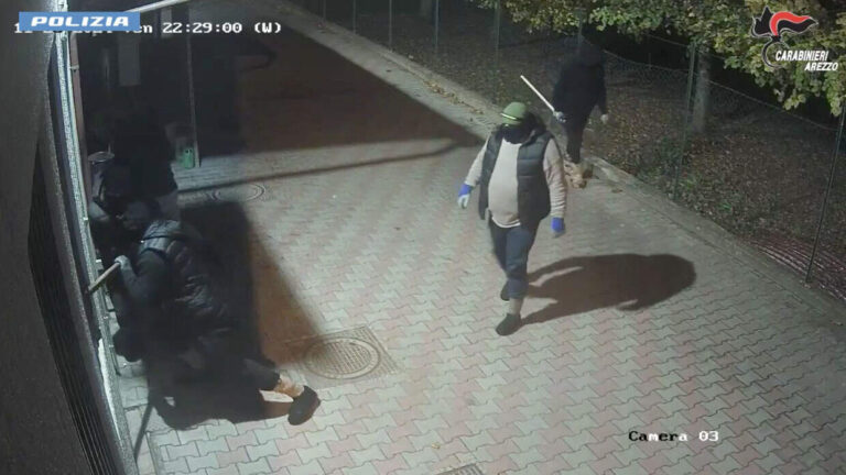 Prendeva avvio unโintensa attivitร info-investigativa portata avanti dagli uomini della Sezione Operativa della Compagnia Carabinieri di Arezzo, della Squadra Mobile di Arezzo e del Servizio Centrale Operativo di Roma, che portava in poche ore ad individuare il covo utilizzato dalla banda fuori provincia e dove, allโesito di una perquisizione, venivano rinvenuti elementi utili ai fini delle indagini che ricollegavano inequivocabilmente i due soggetti al furto commesso la notte prima a Laterina Pergine Valdarno e nello specifico indumenti ed arnesi utilizzati nel corso dellโazione criminosa, oltre ad ulteriori elementi e riscontri investigativi utili al prosieguo delle indagini.