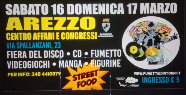 L’associazione culturale fumetti e dintorni di Fucecchio (Fi) torna con la quarta edizione della fiera del disco e del fumetto, patrocinata dal comune di Arezzo.