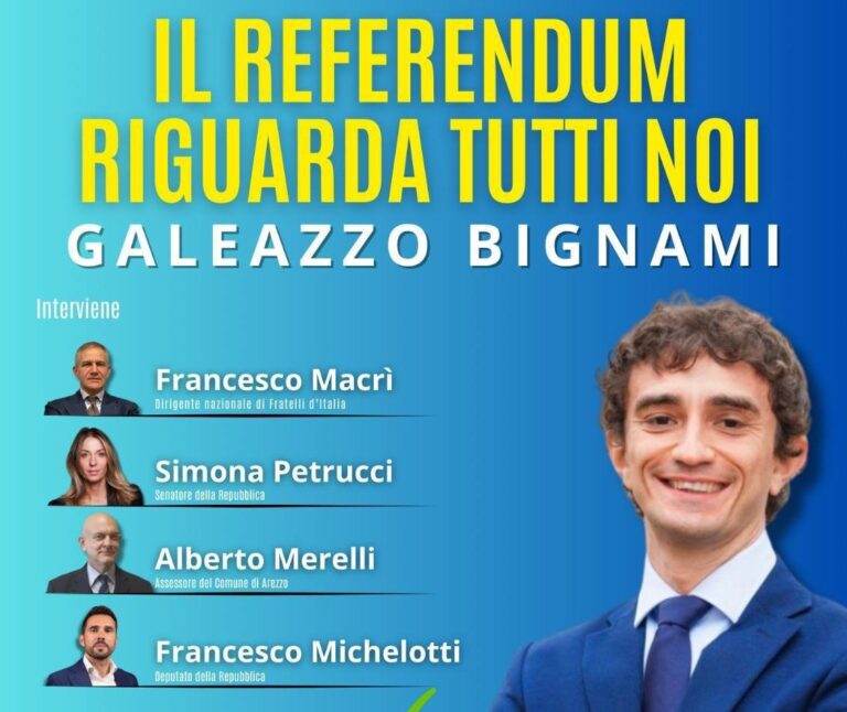 Si terrà domani ad Arezzo alle 17.30, nella Borsa Merci di Piazza Risorgimento, l’incontro promosso da Fratelli d’Italia dedicato ai contenuti della riforma della giustizia e alle ragioni del Sì al prossimo referendum.