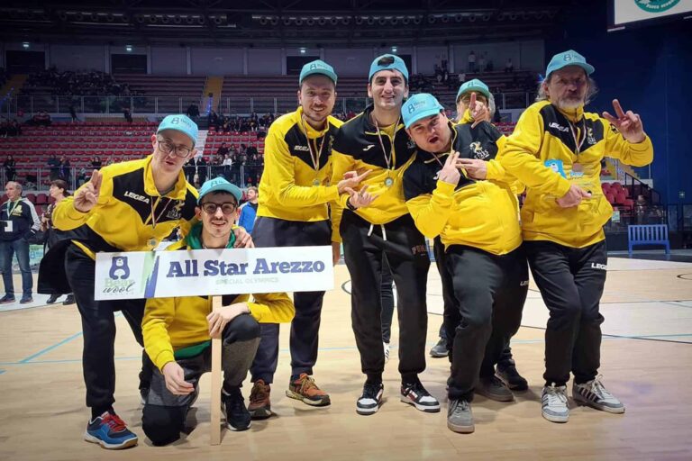 Il percorso di All Stars Arezzo Onlus, allenato da Sara Riccardi, ha preso il via nel girone iniziale con gli incontri con l’ASAD Biella, il Passeportout di Borgosesia e il Super Boys&Girls di Pieve a Nievole, culminati nella finale per il terzo e quarto posto. Il gruppo aretino era formato da un totale di dieci giocatori e, di questi, alcuni hanno vissuto le emozioni delle prime esperienze sportive in una trasferta di tre giorni in un contesto tanto prestigioso, potendo così godere di un’opportunità di autonomia, integrazione, aggregazione, partecipazione alla vita sociale e valorizzazione delle capacità individuali. Queste finalità sono alla base dell’identità e delle attività di All Stars Arezzo Onlus che, nata nel 2002 all’interno dell’Istituto “Madre della Divina Provvidenza” dei Padri Passionisti di Agazzi, trova il proprio fondamento nella volontà di affermare il diritto allo sport attraverso l’incontro tra atleti con e senza disabilità. «Siamo orgogliosi dei nostri ragazzi – commenta Claudia Del Tongo, presidente di All Stars Arezzo Onlus, – che, ancora una volta, hanno testimoniato il valore dello sport come veicolo di inclusione e di autodeterminazione».
