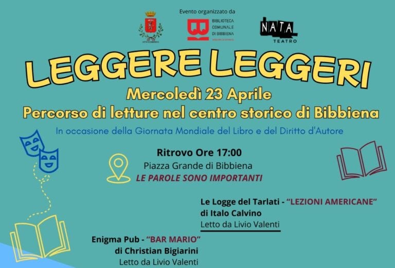 Domani 23 aprile 2025 anche Bibbiena, festeggia la Giornata Mondiale del Libro con l’iniziativa “leggere Leggeri”, un percorso itinerante di letture nel centro storico con inizio da Piazza Grande alle ore 17.00.