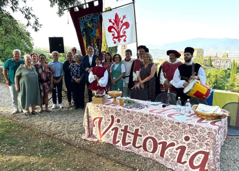 Alla conferenza stampa hanno preso parte, tra gli altri, il presidente dell’Associazione Palio della Vittoria Valter Capacci, il sindaco di Anghiari e presidente della Provincia di Arezzo Alessandro Polcri, le assessore del Comune ospitante Ilaria Lorenzini e Alberica Barbolani da Montauto, il direttore generale della Banca di Anghiari e Stia Credito Cooperativo Fabio Pecorari.