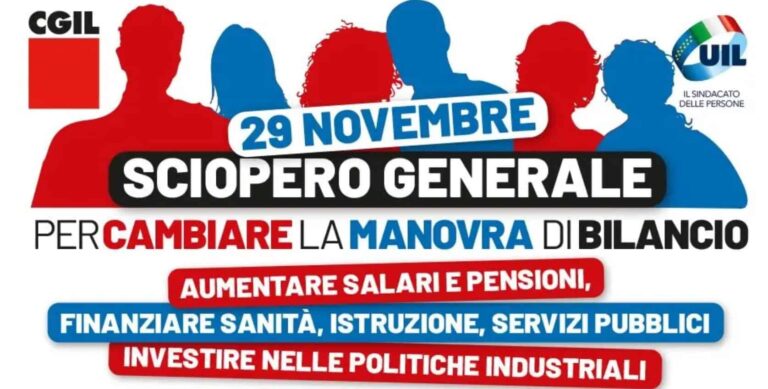 Il 29 novembre sciopero generale per cambiare la manovra di bilancio