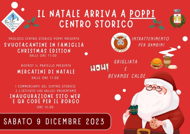 L’inaugurazione del progetto è in programma sabato 9 dicembre alle ore 12 nel borgo di Poppi, in occasione dello “Svuota cantine in famiglia” e dei Mercatini di Natale organizzati dalla Pro Loco centro Storico di Poppi.
