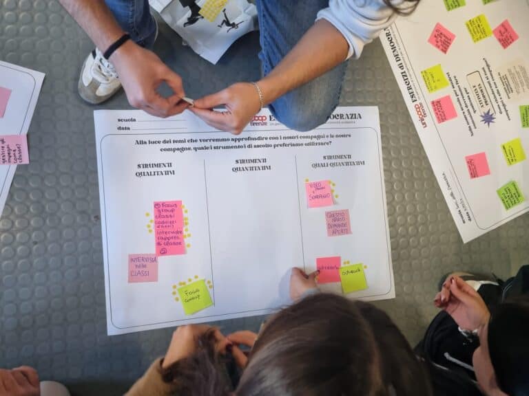 da un lato, quello di far sperimentare metodi e pratiche di ascolto attivo per facilitare il confronto e l’inclusione e, dall’altro, quella di far emergere e diffondere la voce e l’opinione dei ragazzi e delle ragazze consolidando la loro partecipazione alla vita della comunità scolastica.
