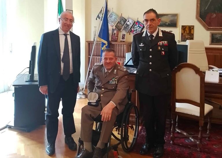 Nella mattinata di ieri, 2 aprile, presso il Palazzo del Governo, il Prefetto ha ricevuto il Tenente Colonnello Gianfranco Paglia, Consigliere del Ministro della Difesa, Medaglia d’Oro al Valor Militare, accompagnato dal Comandante Provinciale dei Carabinieri, Col. Claudio Rubertà.