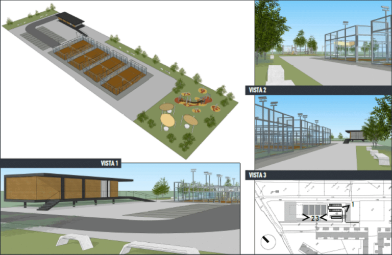 Il programma proposto prevede una riqualificazione degli spazi pubblici tramite la creazione di un’area sportiva con tre campi da Padel ed uno da Pickleball, spogliatoi e punto di ristoro. Inoltre l’operatore provvederà, come richiesto dal bando, alla creazione di un’area giochi per bambine e bambini.