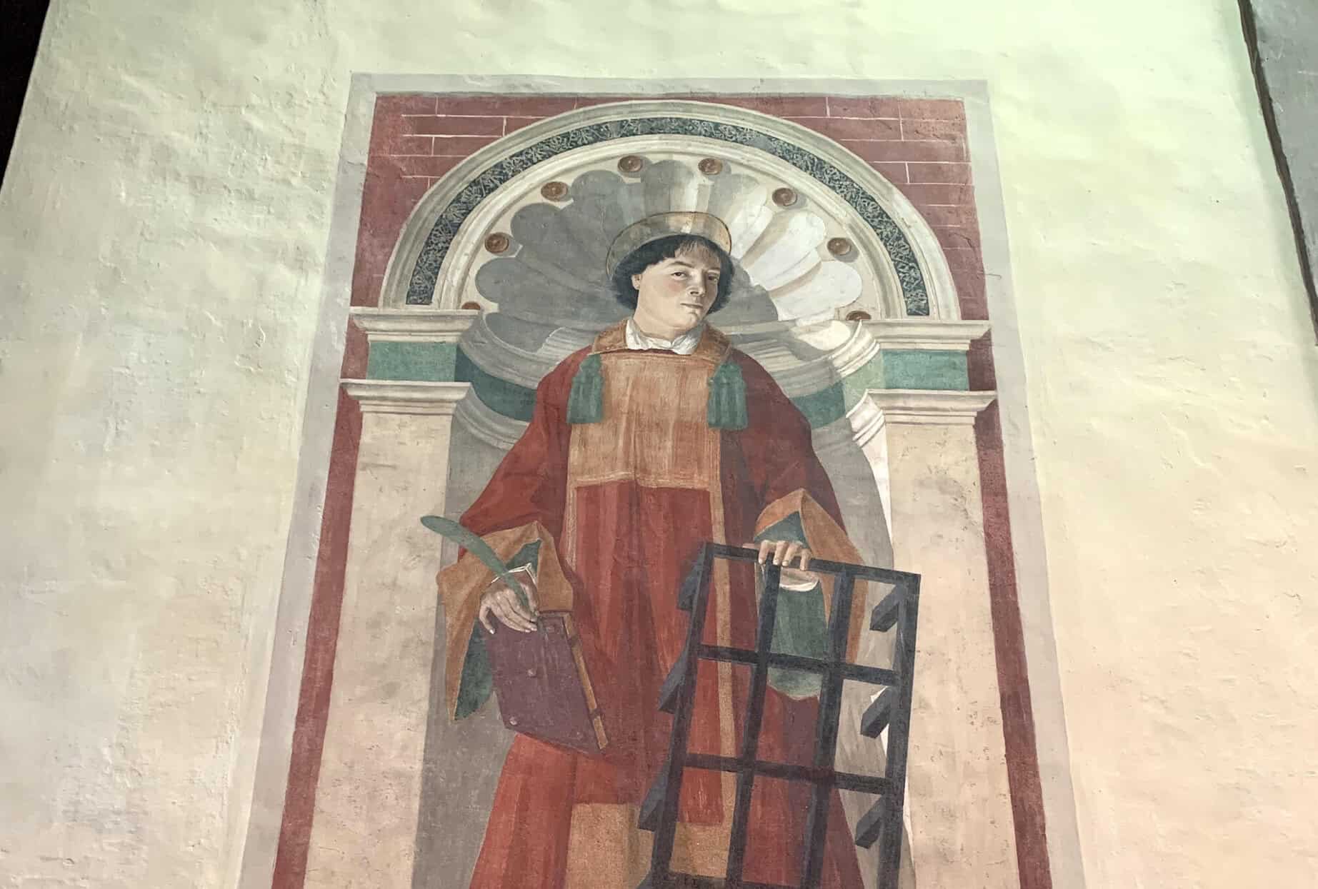 L’affresco con San Lorenzo, che risale al 1476, è la prima opera giunta a noi eseguita da Bartolomeo ad Arezzo e doveva fare parte di una decorazione più ampia, come indica Vasari nella biografia del camaldolese.