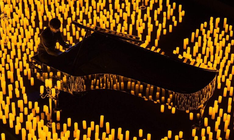 Straordinari musicisti immersi in centinaia di candele che illuminano un luogo magico.