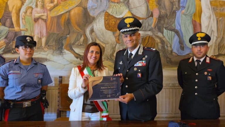 Il Maggiore De Santis, che ha guidato la Compagnia Carabinieri di Cortona ed è ora destinato a un nuovo incarico, ha ricevuto dal Comune un attestato di merito e benemerenza per l’impegno e la professionalità dimostrati.