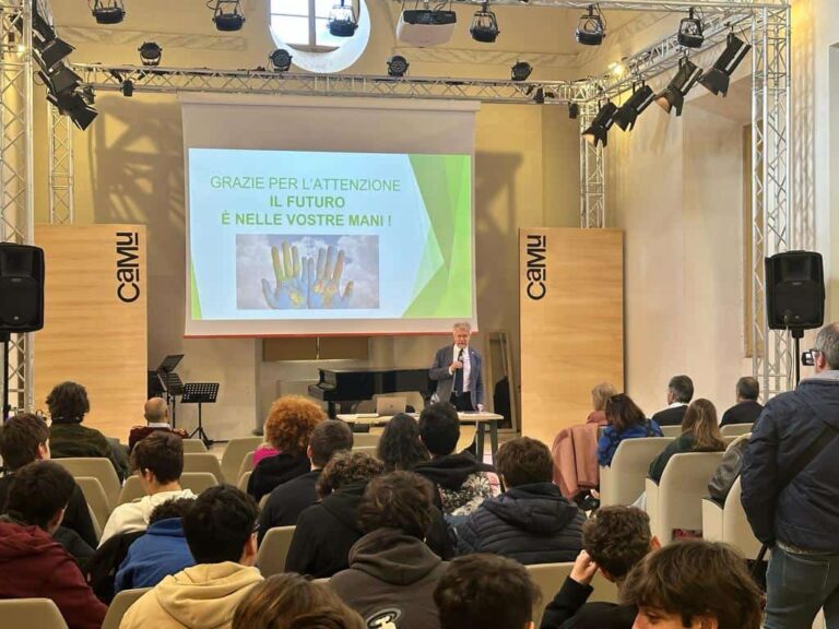 Il sindaco ha quindi parlato agli studenti della tecnologia che sta alla base del biodigestore “Verde70” di San Zeno per la produzione di biometano dai rifiuti e dell’avvio del processo di costituzione delle comunità energetiche sostenibili.
