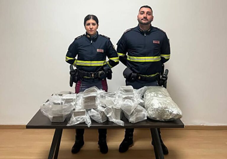Il 40enne veniva pertanto arrestato e condotto in carcere a disposizione dell’A.G., mentre l’auto e i 30 kg di sostanza stupefacente sono stati sequestrati per la successiva confisca.