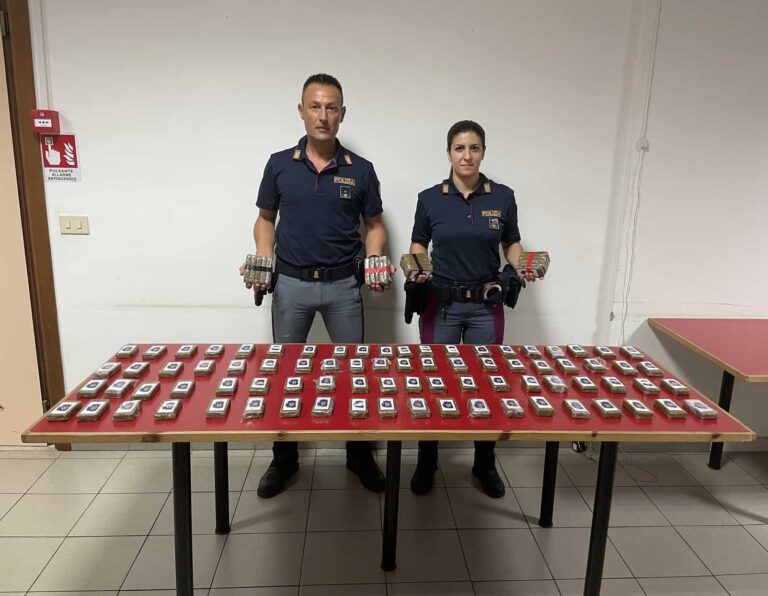 Raggiunto lโabitacolo i Poliziotti sono stati investiti dallโinconfondibile odore acre di hashish la cui intensitร faceva presupporre il trasporto di una ingente quantitร di sostanza stupefacente.