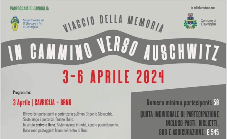 La Parrocchia di Cavriglia e la Misericordia di San Giovanni Valdarno โ sezione di Cavriglia, con la collaborazione dellโAmministrazione Comunale, organizzano un viaggio della memoria con la finalitร di visitare i campi di concentramento di Auschwitz e Birkenau, ove sono stati perpetrati i piรน efferati ed atroci piani di sterminio della Seconda Guerra Mondiale.