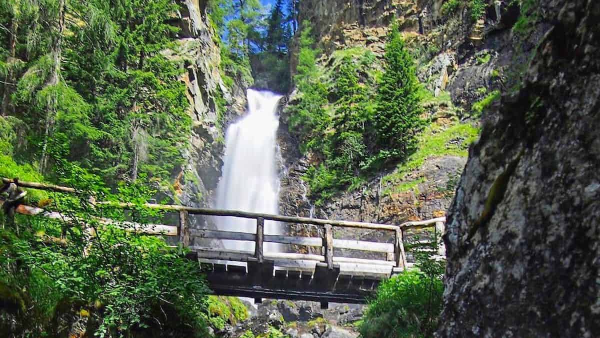 Dopo aver raggiunto la prima cascata si sale lungo il ripido sentiero per raggiungere il celebre ponte di fronte alla seconda cascata, spumeggiante e decisamente spettacolare (1750 m.s.l.m.).