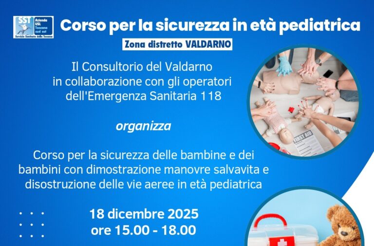 Un appuntamento di formazione per aiutare genitori e caregiver ad acquisire le giuste informazioni sulla sicurezza in età pediatrica e sulla gestione dei traumi si terrà il prossimo 18 dicembre, dalle 15 alle 18, presso l’Auditorium dell’ospedale del Valdarno Santa Maria alla Gruccia di Montevarchi.