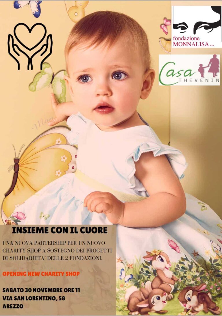 Fondazione Thevenin e Fondazione Monnalisa “insieme con il cuore” per un Natale di solidarietà. Inaugura domani sabato 1 dicembre alle ore 11:00 in via San Lorentino 58 il nuovo charity shop che per tutti i fine settimana della “Città del Natale” proporrà abbigliamento per bambini firmato Monnalisa e accessori della azienda brasiliana AREZZO, questi ultimi parte della collezione presentata a fine agosto in città e donata a Casa Thevenin.