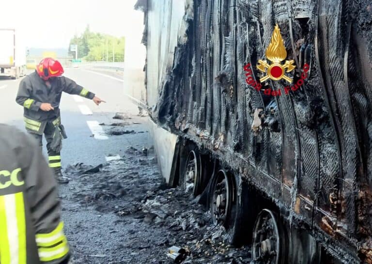 Incendio di un mezzo pesante sull’autostrada A1 a Reggello
