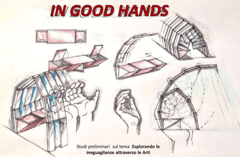 Gli studenti hanno proposto il lavoro “In Good Hands”, progetto per la realizzazione di una panca-pensilina pensata per il centro storico cittadino, con l’idea di dare una mano agli altri, ai più deboli, all’ambiente, alla collettività, in linea, anche, con gli obiettivi della sostenibilità ambientale proposti dall’Agenda 2030. La forma studiata richiama la mano e la sua capacità di movimento.