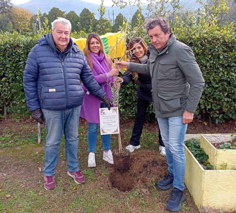 Stamani si è svolta una semplice cerimonia di consegna della pergamena ma soprattutto la messa a dimora di una pianta di olivo donata dalla sezione Valdichiana di Legambiente.