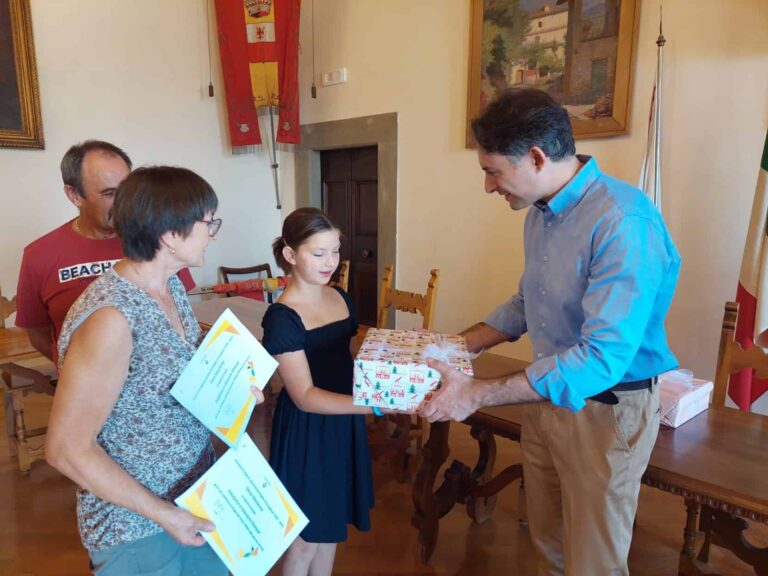 Le due generose famiglie anghiaresi ,di cui una è di origine ucraina ,da molti anni residente ad Anghiari, alla fine del periodo estivo,  sono state ricevute dal sindaco  nella Sala del Consiglio per un ringraziamento e un affettuoso saluto alle bimbe .