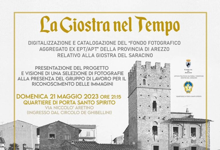 L’iniziativa, organizzata in collaborazione con l’Ufficio Politiche culturali, turistiche e Giostra del Saracino, riguarderà l’attività di digitalizzazione e catalogazione del “Fondo Fotografico Aggregato Ex EPT/APT” della Provincia di Arezzo, relativo alla Giostra del Saracino.