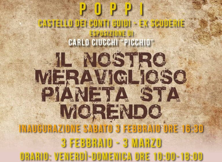 Si inaugura sabato 3 febbraio alle ore 16:30 presso il Castello dei Conti Guidi di Poppi la mostra Il nostro meraviglioso pianeta sta morendo dell’artista toscano Carlo Ciucchi Picchio.