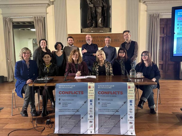 Oggi, 31 Marzo alle ore 11 presso il Teatro Vasariano si è tenuta la Conferenza Stampa per presentare gli spettacoli del 4 Aprile (ore 18 primo spettacolo ed ore 21 il secondo) dal titolo “Conflict” al Teatro Petrarca a conclusione del progetto musicale “Le Reti delle Arti”.