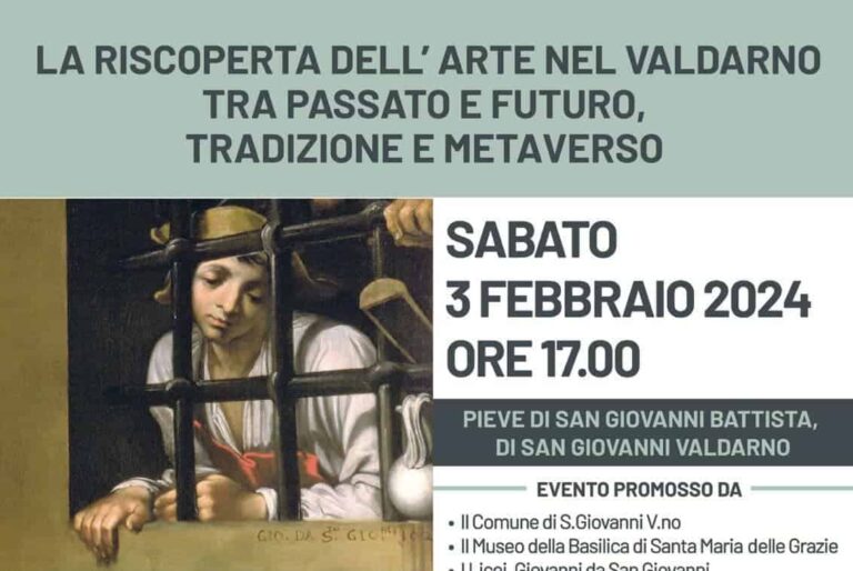 E’ in programma sabato 3 febbraio alle 17 alla pieve di San Giovanni Battista l’evento dal titolo “La riscoperta dell’arte in Valdarno tra passato e futuro, tradizione e metaverso”. L’iniziativa è promossa dal Comune di San Giovanni Valdarno , il museo della Basilica di Santa Maria delle Grazie, i licei Giovanni da San Giovanni, l’interclub tra la Lega del Chianti, i club Lions e Rotary del Valdarno, l’Accademia italiana della cucina e il Panathlon del Valdarno superiore con l’obiettivo di valorizzare il patrimonio artistico e culturale del Valdarno e del pittore Giovanni Mannozzi.