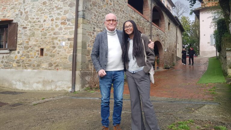 Diop ha incontrato il presidente e fondatore di Rondine Cittadella della Pace Franco Vaccari, ragazze e ragazzi dello Studentato internazionale-World House, studentesse e studenti del Quarto anno Liceale d’eccellenza a Rondine, il percorso didattico sperimentale che coinvolge istituti scolastici superiori di tutta Italia.