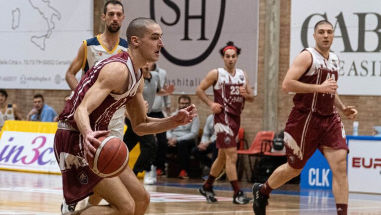Le scarse percentuali al tiro da fuori e le tante palle perse condizionano il primo quarto dei ragazzi di coach Evangelisti che rimangono oltre 4 minuti senza segnare permettendo ai padroni di casa di trovarsi in vantaggio 15-13 al 10′.