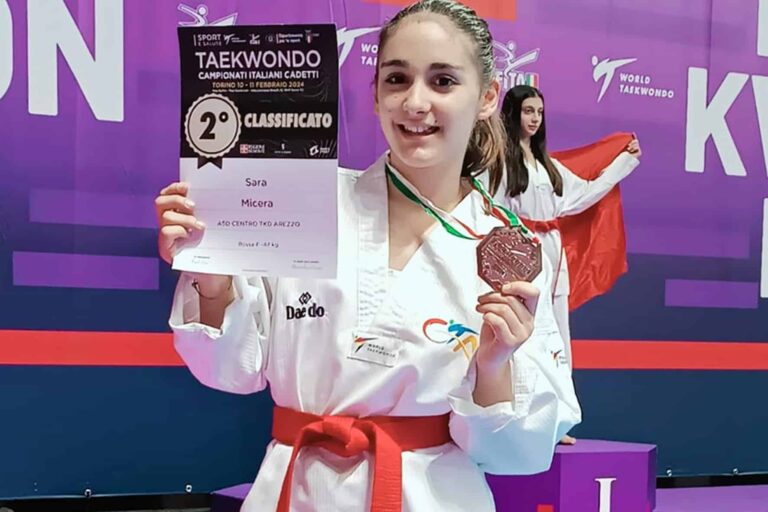 L’atto decisivo ha visto la rappresentante del Centro Taekwondo Arezzo arrendersi solo a Serena Ferro della Scuola Taekwondo Genova e mettersi dunque al collo la medaglia d’argento, con un risultato che la consacra comunque tra le promesse del panorama giovanile nazionale. «La città di Arezzo può festeggiare una vicecampionessa italiana di taekwondo – commenta il maestro Andrea Rescigno, fondatore e allenatore del Centro Taekwondo Arezzo, – con un successo che ripaga e gratifica del duro impegno quotidiano in palestra. Le nostre congratulazioni vanno a Micera per questo bel risultato e ai suoi compagni di squadra che, nel recente periodo di intensi allenamenti, le sono stati accanto per permetterle di esprimersi al meglio, inoltre rivolgiamo un ringraziamento alla famiglia che ne sostiene il percorso sportivo e al maestro Antonino Cappello della NrGym Arezzo con cui stiamo collaborando per raggiungere traguardi sempre più importanti».