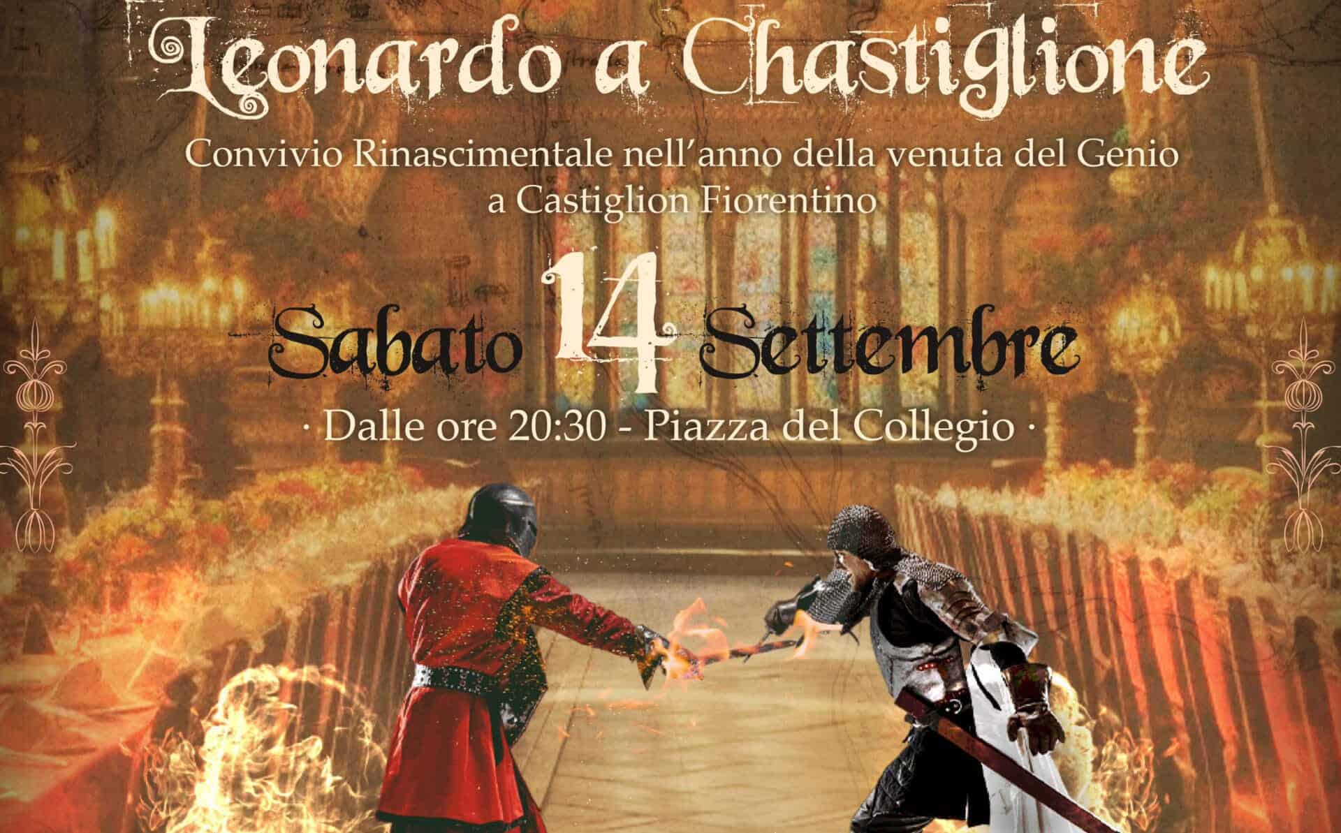 Nello scenario di piazza del Collegio, a due passi da Porta Romana, Leonardo a Chastiglione sarà un banchetto rinascimentale, con menù cinquecentesco e scenografia curata ad hoc, mentre gli spadaccini e i musici costruiranno la coreografia all’interno della quale verrà rappresentata, in forma recitata, la storia che lega Leonardo a queste terre.