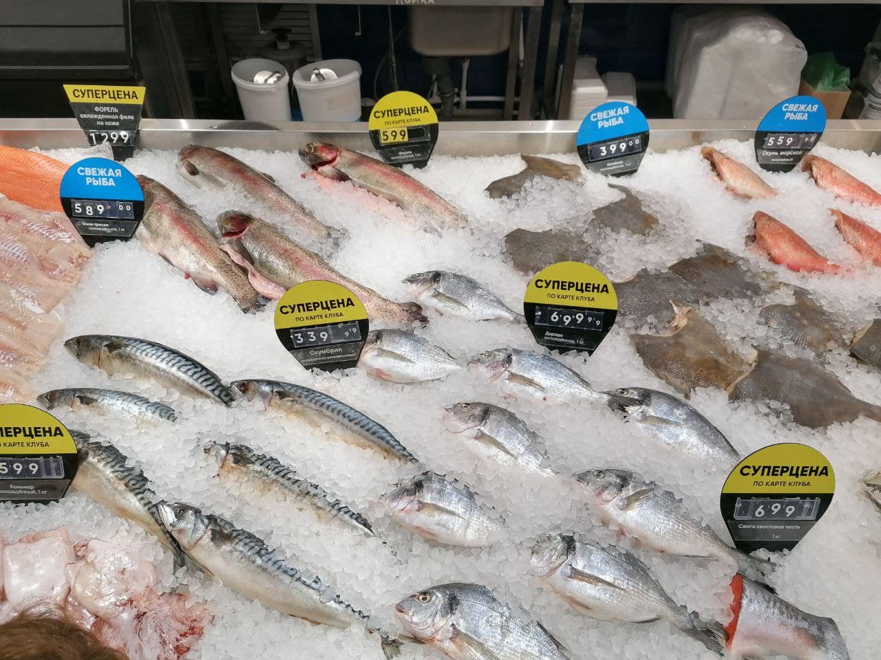 Pesce vario, da 340 a 700 rubli/kg (3.5-7.20€)