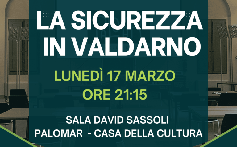 Lunedì 17 marzo, alle 21,15, nella sala David Sassoli di Palomar, si terrà un importante incontro dal titolo “La sicurezza in Valdarno”, organizzato dalla Conferenza zonale dei sindaci del Valdarno e dal Comitato delle categorie economiche e produttive del Valdarno.