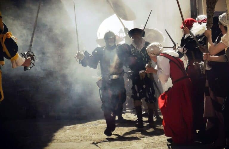 I vicoli e le piazze del borgo della Valdichiana permetteranno di tornare nel lontano 1554 con la fedele ricostruzione di scene e ambientazioni di vita civile e militare tra il mercato rinascimentale, l’arruolamento dei mercenari, l’addestramento dei picchieri e della fanteria, le esercitazioni di tiro degli archibugieri, le danze rinascimentali e, soprattutto, la messa in scena dello scontro tra l’esercito fiorentino e l’esercito senese.
