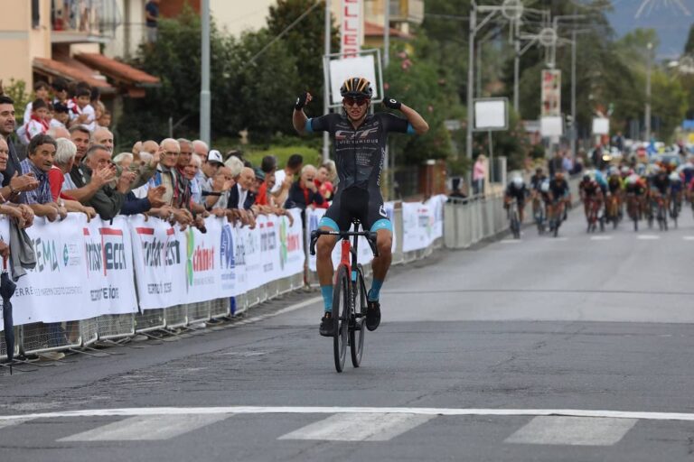 A pochi secondi il compagno di squadra Bruttomesso, il miglior velocista italiano in categoria, completava il trionfo del Team Friuli davanti a Boscaro della Colpack, Di Felice, Rizza, Buda e Milan, fratello di Jonathan, campione olimpico dell’inseguimento a squadre e vincitore quest’anno di una tappa al Giro d’Italia.