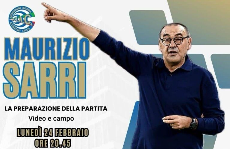 Sarà Maurizio Sarri l’ospite d’eccezione dell’Associazione italiana allenatori di calcio di Arezzo. Appuntamento lunedì 24 febbraio alle 20.45 nell’auditorium dell’Arbitro Club di Arezzo (zona stadio Comunale).