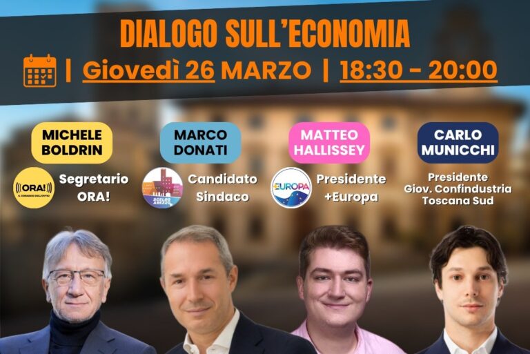 L’incontro sarà moderato da Marco Teci, delegato regionale di ORA! Il Coraggio dell’ovvio per Arezzo.